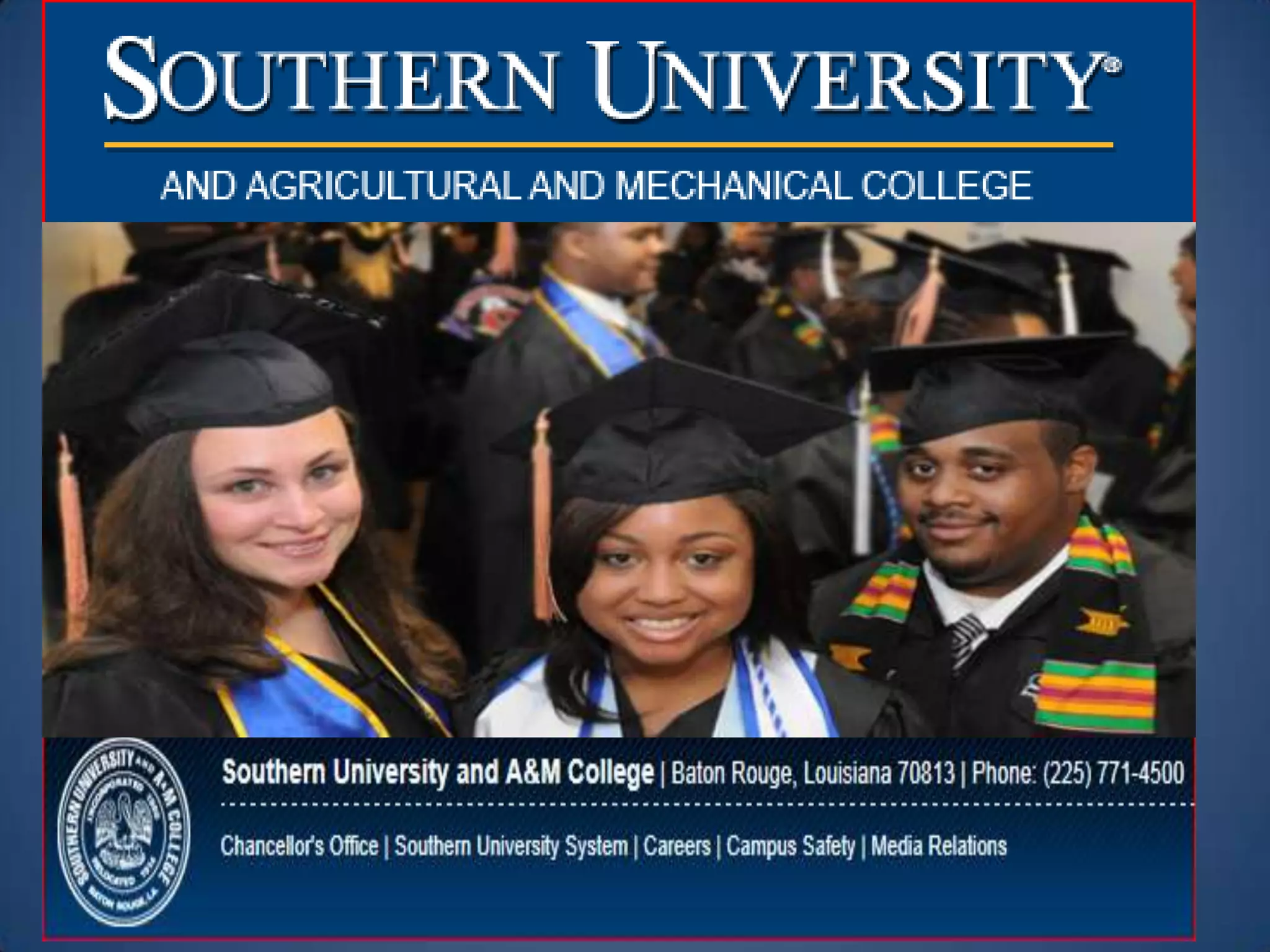 Southern University has 3 campuses in Louisiana located in Shreveport, Baton Rouge, and New Orleans. It offers a Bachelor of Science in Computer Science with concentrations in areas like robotics, e-business, and video game programming. The estimated 4-year cost for a computer science degree is $59,000, with in-state tuition per semester costing around $7,428. The computer science program requires 54 credit hours and Southern University has notable alumni in fields like the NBA, NFL, hip hop, and government.
