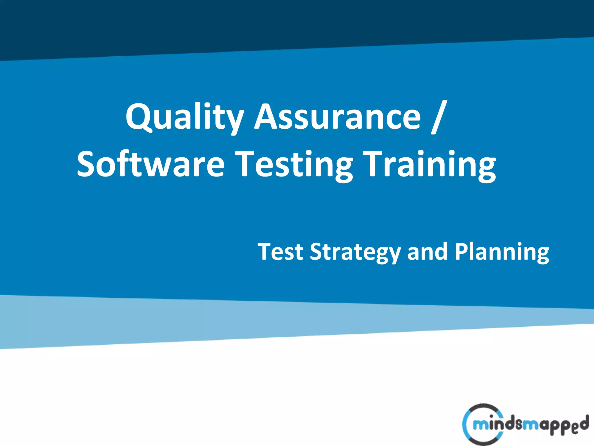 The document outlines the processes of test strategy and planning in software testing, emphasizing the distinction between a test strategy document and a test plan document. It details the components of each document, including objectives, scope, resources, and risk management, while providing techniques for estimating testing efforts. Overall, it highlights the importance of thorough documentation and clear communication for effective quality assurance.