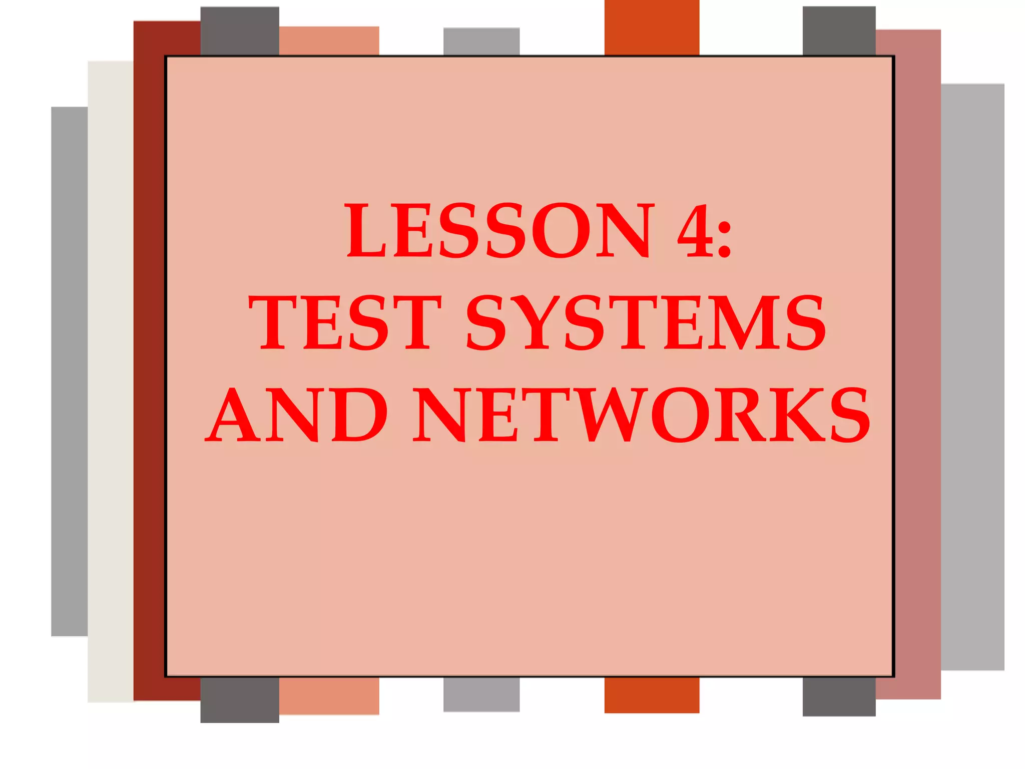 The document discusses testing computer systems and networks. It outlines three major components to test: hardware, software, and firmware. For hardware testing, it recommends checking the monitor and peripherals like keyboard and mouse, as well as I/O ports, power supply, and connection cables. Software testing involves checking the operating system for updates, application software updates, and running antivirus scans. Firmware testing means checking the BIOS configuration.