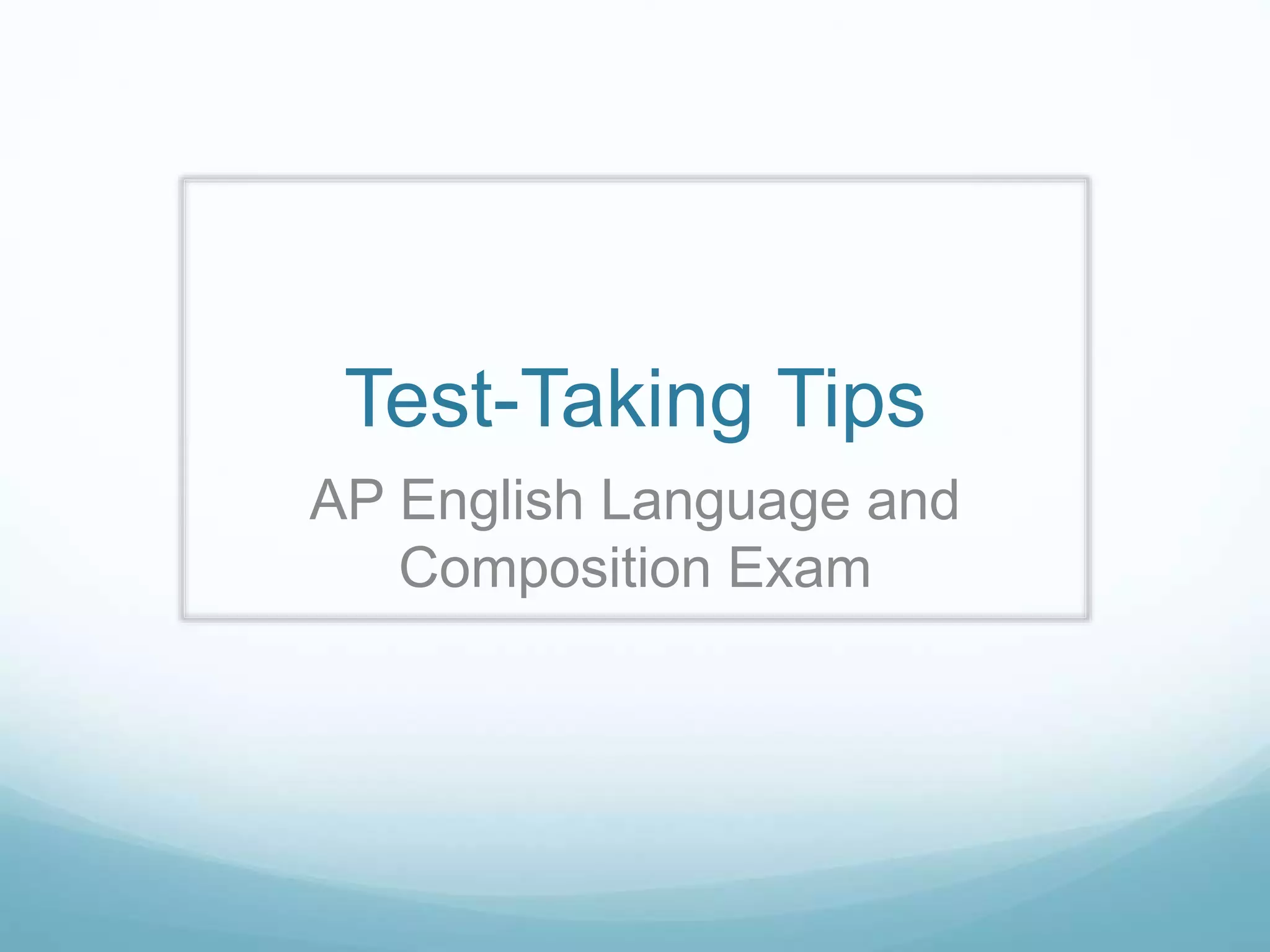 The document provides test-taking tips for the AP English Language and Composition exam. It is divided into three hours and 15 minutes, with section one being multiple choice questions on reading comprehension and section two consisting of three free response essays. The multiple choice section has strategies for pacing, annotating passages, eliminating incorrect answers, and practicing question types. For the essays, tips include understanding the prompt, developing a clear thesis, planning with an outline, and incorporating evidence effectively. Specific strategies are outlined for the synthesis, analysis, and argumentative essay formats.
