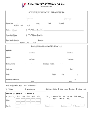 LANA’S GYMNASTICS CLUB,Inc.