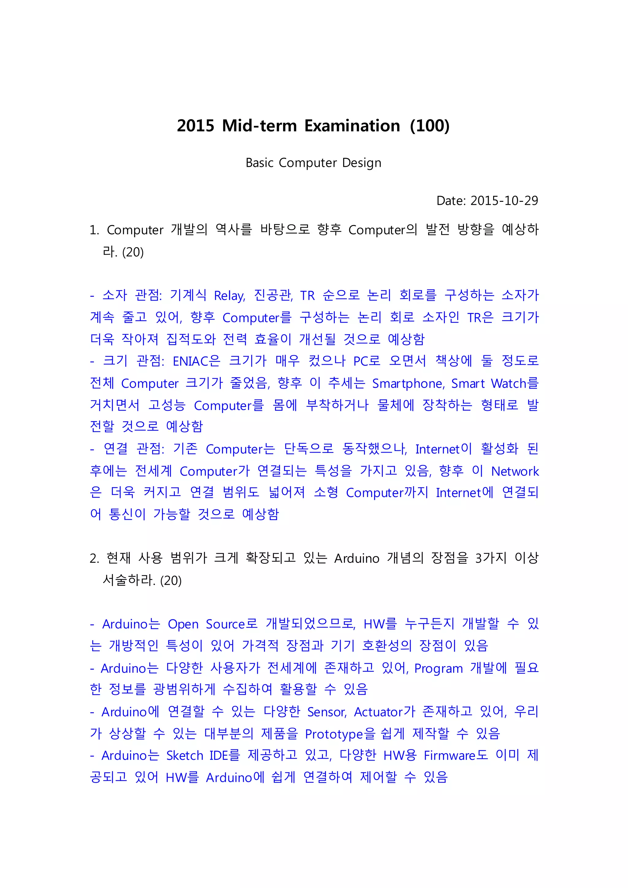1. Computer 개발의 역사를 바탕으로 향후 Computer의 발전 방향을 예상하