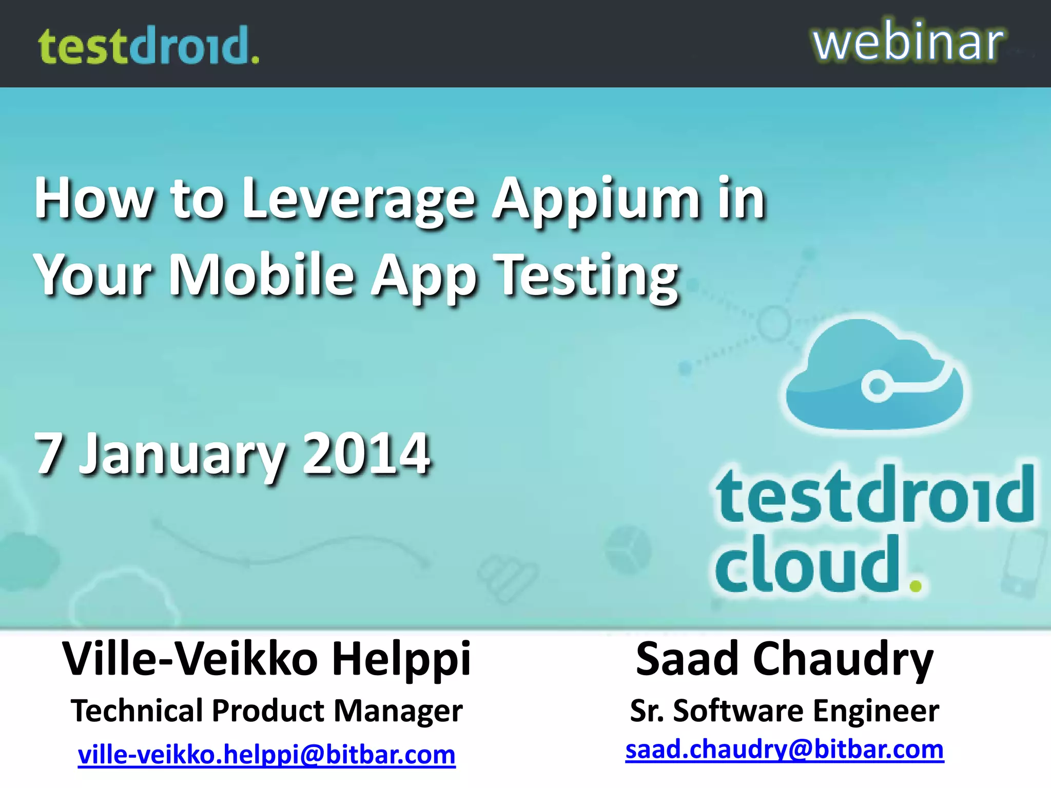 This document discusses how to leverage Appium for mobile app testing. It begins with an agenda that includes different ways to automate app testing, how Appium compares to other frameworks, using Appium with real devices via Testdroid Cloud, and tips for professional mobile app testing. It then covers various topics on the agenda, such as how Appium works, code examples, its support for Android and iOS, and integrating development and testing. The goal is to help attendees understand how to incorporate Appium into their mobile testing process.