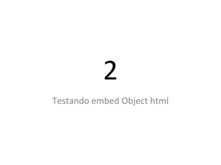 This document repeats the phrase "Testando embed Object html" on multiple lines without providing any additional context or information. It appears to be testing embedding an HTML object but does not state what is being tested or the purpose of the test. The repeated phrase across lines does not offer meaningful details about the content.
