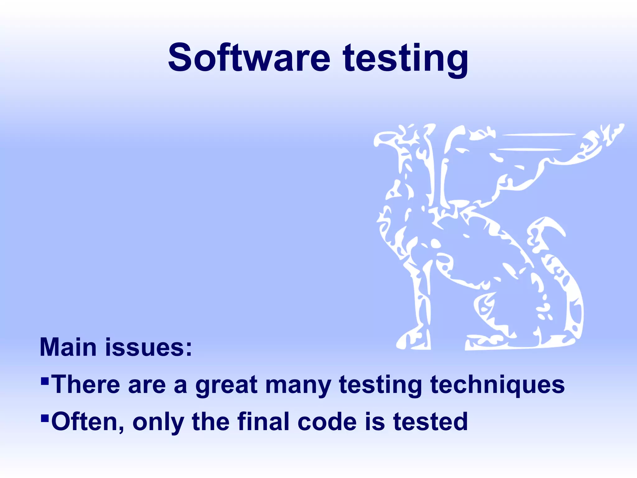 The document discusses software testing techniques. It notes that often only final code is tested and there are many testing techniques. It then provides an overview of testing preliminaries, different test techniques, comparing techniques, and software reliability. Key points include that errors made early in development are often discovered late and are costly to fix, and it is beneficial to start testing early. The document discusses various manual and automated testing techniques like inspections, coverage-based testing, and requirements-based testing.