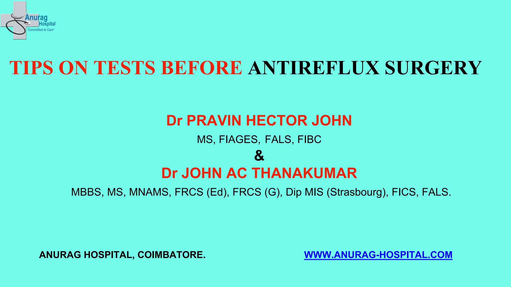 The document outlines essential preoperative tests and considerations for antireflux surgery, emphasizing the importance of proper diagnostics to ensure better outcomes. It discusses various testing methods such as pH monitoring, impedance testing, manometry, and endoscopy, and highlights cautionary measures before these tests, particularly regarding medication use. The summary also includes specific tests for conditions like Barrett's esophagus and large paraesophageal hernias.