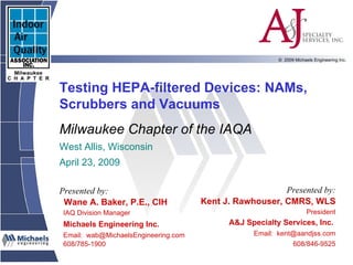 The document presents a discussion on the efficacy of HEPA-filtered devices, highlighting issues related to containment and safety in healthcare settings. It addresses the need for consistent testing methods, awareness of device performance, and interim solutions while manufacturers respond to existing concerns. The authors emphasize the importance of protecting vulnerable populations and the increased sensitivity within healthcare environments.