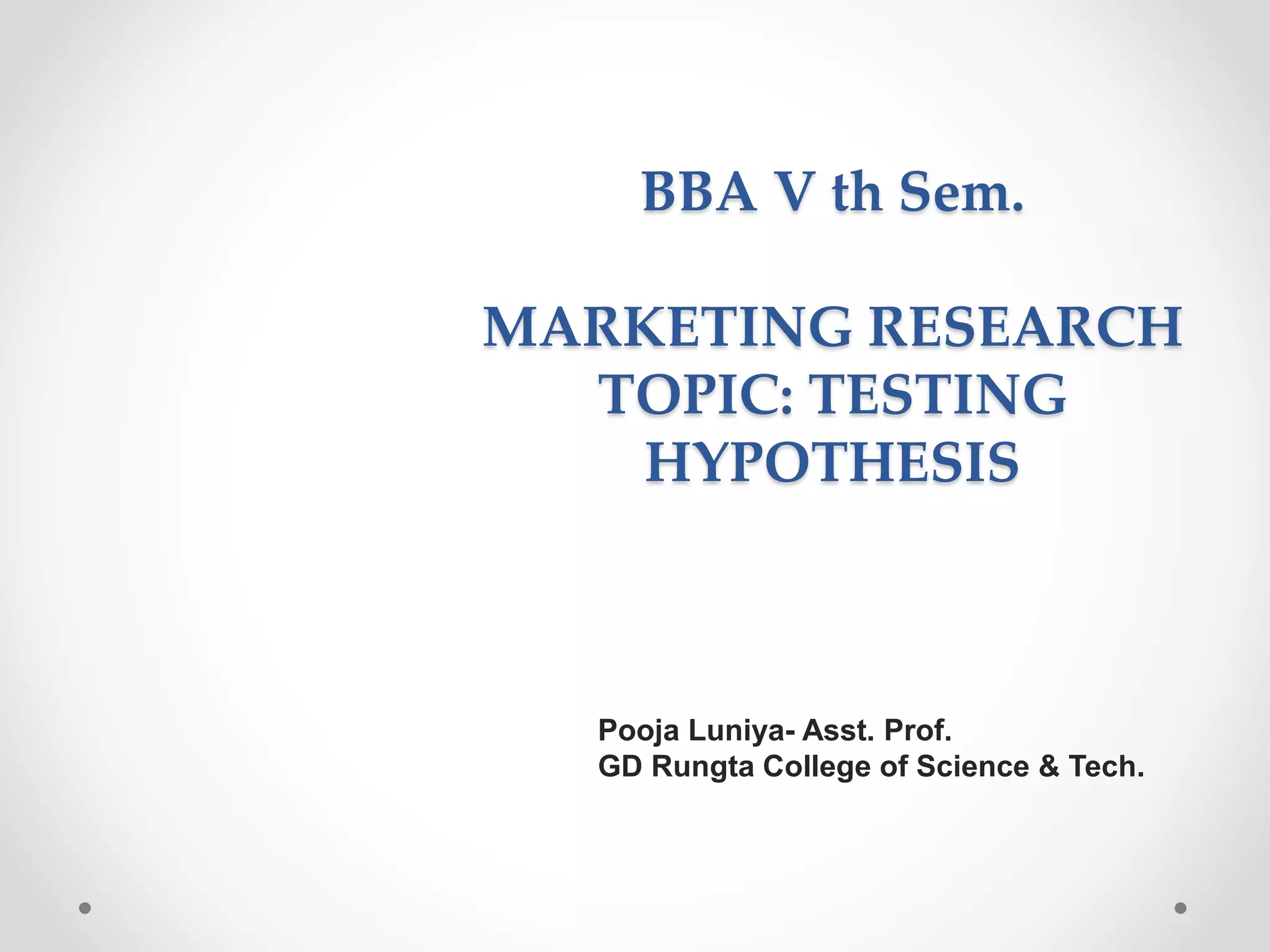 The document discusses hypothesis testing in marketing research. It defines a hypothesis as a predictive statement that can be scientifically tested, relating an independent variable to a dependent variable. A research hypothesis must be clear, testable, specify the relationship between variables, and be limited in scope. The document introduces the concepts of the null hypothesis (H0), which is proposed to be rejected, and the alternative hypothesis (Ha), which is accepted upon rejection of H0. It describes the level of significance as the risk of rejecting a true null hypothesis, usually set at 5%, and the confidence interval as the remaining 95%. Finally, it explains the types of errors in hypothesis testing - type I errors where a true null is rejected, and type II errors