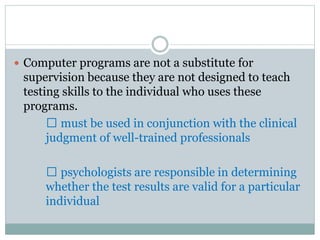 - Psychological testing is used for personnel selection and must meet professional and legal standards by directly relating to job requirements.