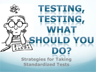 The document provides strategies for taking standardized tests successfully in 3 or fewer sentences: