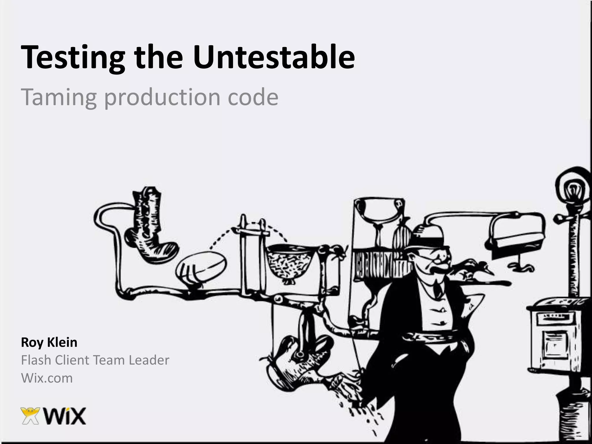 1. The document discusses techniques for testing legacy production code that was not originally written with testability in mind. This includes unit testing, which allows verifying code works as expected in isolation, and writing tests before making changes to help preserve existing behavior.