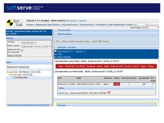 The document provides tips and recommendations for various quality assurance and testing tools, including tools for project management, test management, visualization, executing tests, cross-browser testing, debugging, automation, and security standards. It also lists the contact information for Softserve's global headquarters.