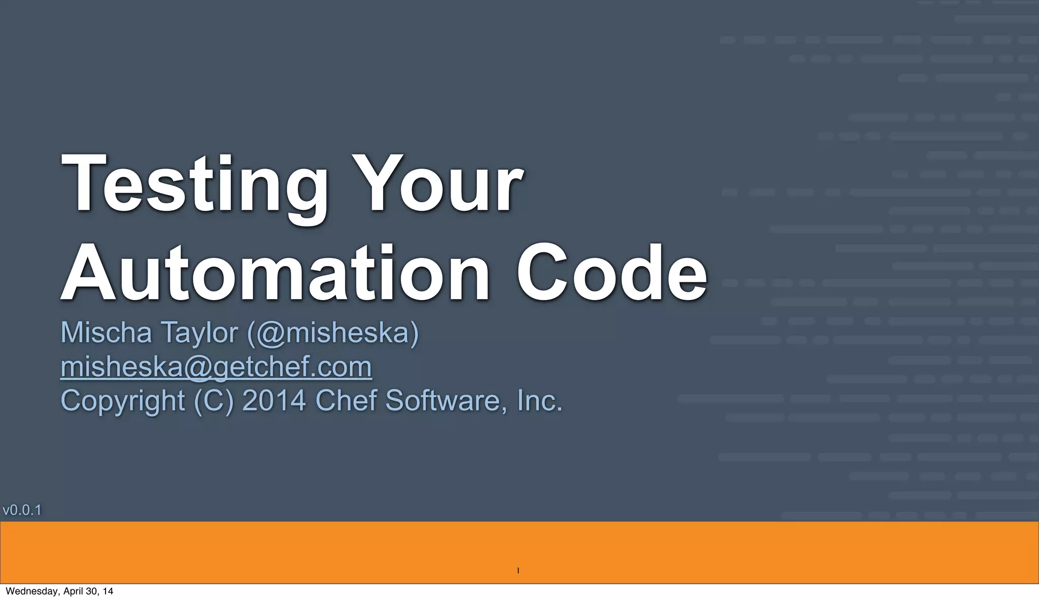 - The benefits of testing infrastructure code with Chef including making things more testable, repeatable and finding bugs earlier in the development process.
