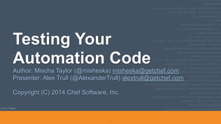 - The document discusses installing Test Kitchen and the kitchen-vagrant plugin via RubyGems, and generating a Gemfile template to specify the required gems for testing the Apache cookbook.