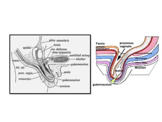 The document provides information about the testis and spermatic cord. It describes the testis as the male gonad that is homologous with the ovary and functions to produce spermatozoa and secrete testosterone. It details the external features, coverings, blood supply, lymphatic drainage, and normal descent process of the testis from abdominal cavity to scrotum during fetal development. Applied topics like hydrocele, varicocele, testicular cancer, undescended testis, and torsion of testis are also mentioned. The epididymis is described as a comma-shaped structure made up of highly coiled tubes that act as reservoirs for spermatozoa.