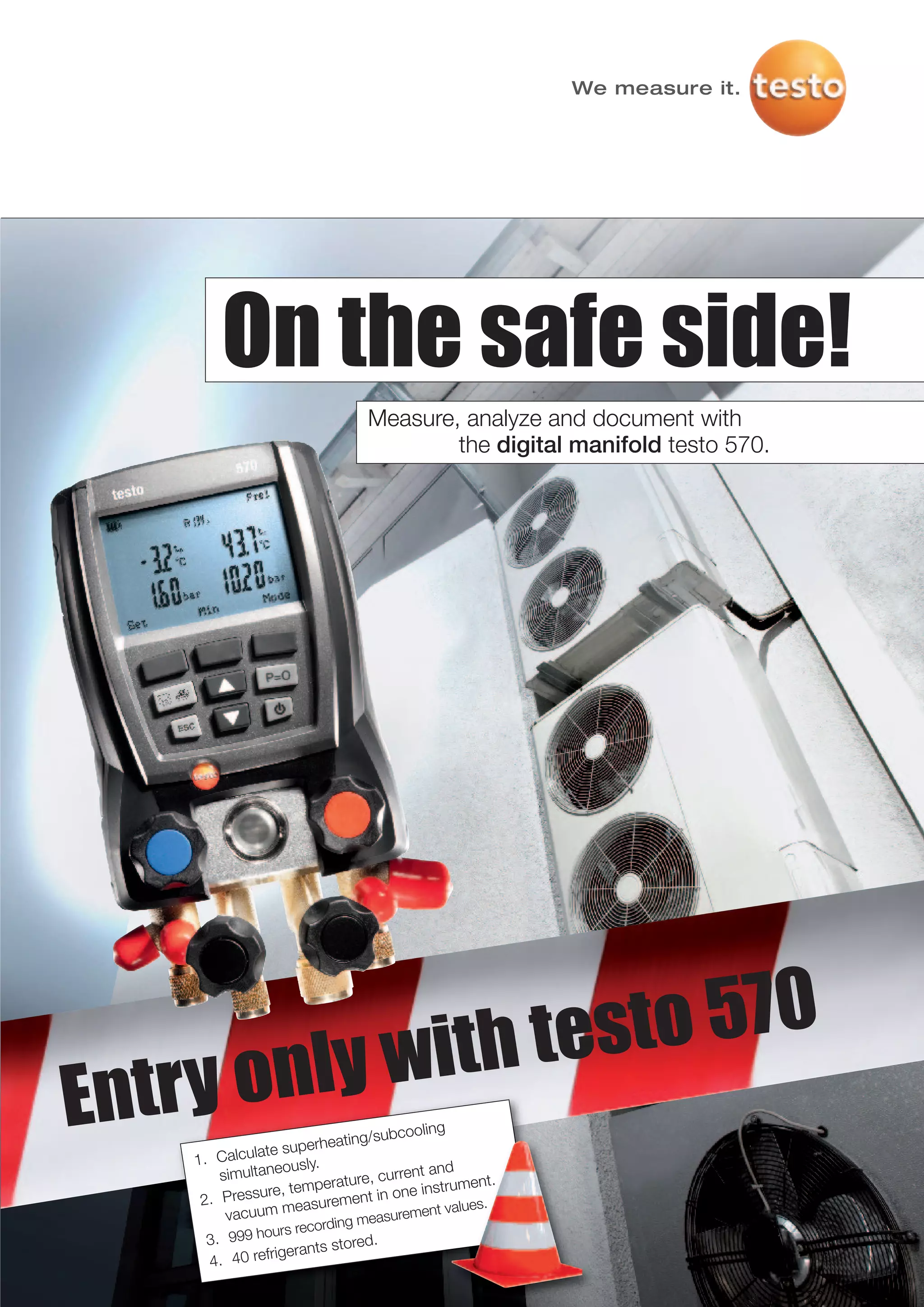 The document summarizes the features of the Testo 570 digital manifold, including: