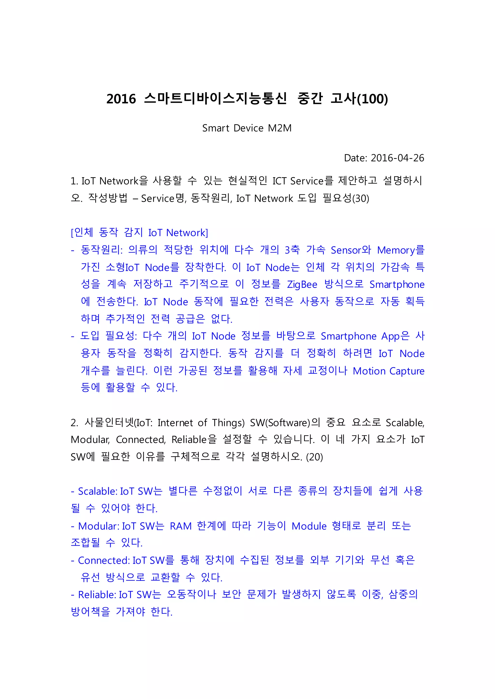 1. IoT Network을 사용할 수 있는 현실적인 ICT Service를 제안하고 설명하시