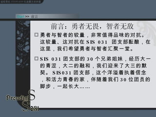 文档总结了 sis031 团支部在2005年的发展和成就,强调团员们的进步及丰收,组织了多样的思想政治学习和社区活动。支部成员积极参与社会实践和志愿服务,通过团活加强了交流与合作。整体展现了团员们的成长与对社会的责任感。
