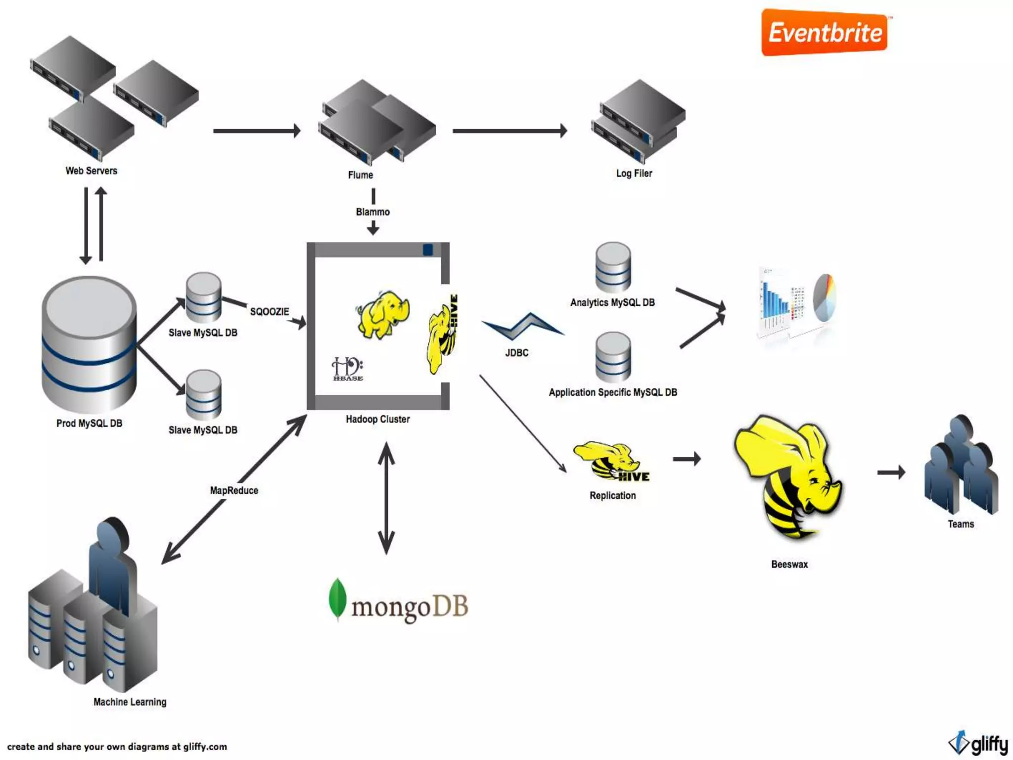 The document discusses Eventbrite's data platform and services. It describes Eventbrite as a social event ticketing platform that has doubled revenue yearly. It then summarizes Eventbrite's use of Hadoop, HBase, MongoDB and other technologies to power analytics, recommendations, and real-time data processing. Recommendation engines discussed include collaborative filtering, item hierarchies, and building implicit and mixed social graphs to connect users and events.
