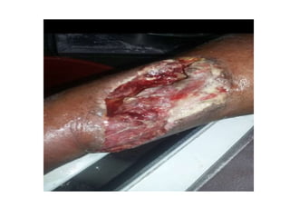 This document presents a case report of a 50-year-old male farmer who was admitted to the hospital with symptoms of tetanus. He had sustained a deep cut on his right calf while working in his field one week prior that had been sutured at a local health center. On admission, he exhibited stiffness of the neck muscles and inability to open his mouth. He was diagnosed with tetanus and admitted to the intensive care unit for management. Treatment included wound debridement, antibiotics, tetanus immunoglobulin, sedation and muscle relaxants. Tetanus is a vaccine-preventable neurological disease caused by Clostridium tetani spores entering the body through wounds. It causes painful muscle