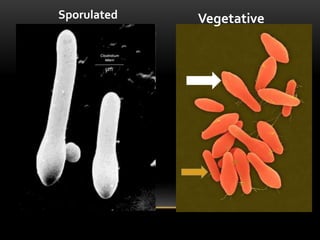 Tetanus is caused by the bacteria Clostridium tetani entering the body through wounds and producing a toxin that causes painful muscle spasms. It is found worldwide in soil and animal waste. The spores can live for years in the body until an injury provides anaerobic conditions for the bacteria to grow. The toxin travels to motor neurons and prevents inhibitory signals, causing constant muscle contraction. Symptoms include lockjaw, arching of the back, and risus sardonicus. Treatment involves wound cleaning, antibiotics, antitoxin antibodies, and supportive care. Tetanus is preventable through active immunization with the tetanus toxoid vaccine as part of routine childhood immunization schedules and bo
