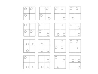 a) Exemple: 4 possibles variacions de la posició, girant el tetrabrick 90 º cada vegada (vistes en planta).