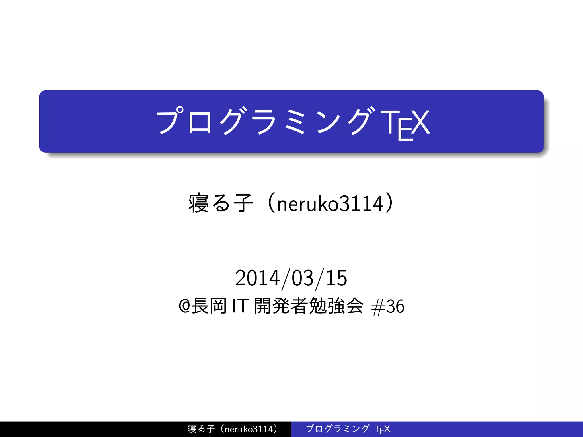 プログラミングTEX 寝る子(neruko3114) 2014/03/15 @長岡 IT 開発者勉強会