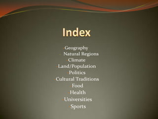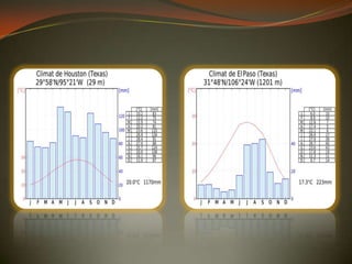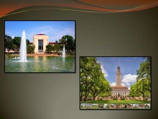 Texas has a varied geography and climate due to its large size. It has coastlines, plains, and mountainous areas in the west. Texas has a population of over 24 million, with the largest cities being Houston, San Antonio, and Dallas. The state has a diverse economy focused around oil/gas, agriculture, and technology. Some of the top universities include the University of Texas at Austin and University of Houston. Popular sports include basketball, with NBA teams like the Spurs, Rockets, and Mavericks, as well as rodeos and baseball. The cuisine features barbecue, biscuits and gravy, and breakfast tacos.