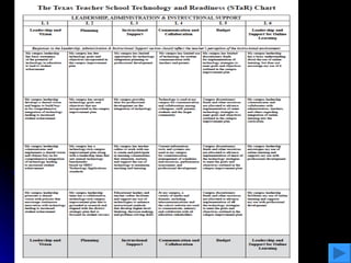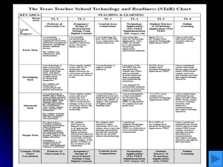 The STaR Chart is a tool used by Texas schools to evaluate their progress in meeting the technology goals outlined in the Long-Range Plan for Technology. The STaR Chart allows schools to set goals, measure their progress across four areas of technology implementation, and see where they fall in categories of early, developing, advanced or target technology use. It also provides insight into funding and shows collaborative efforts between state and local education levels to improve technology and student outcomes.