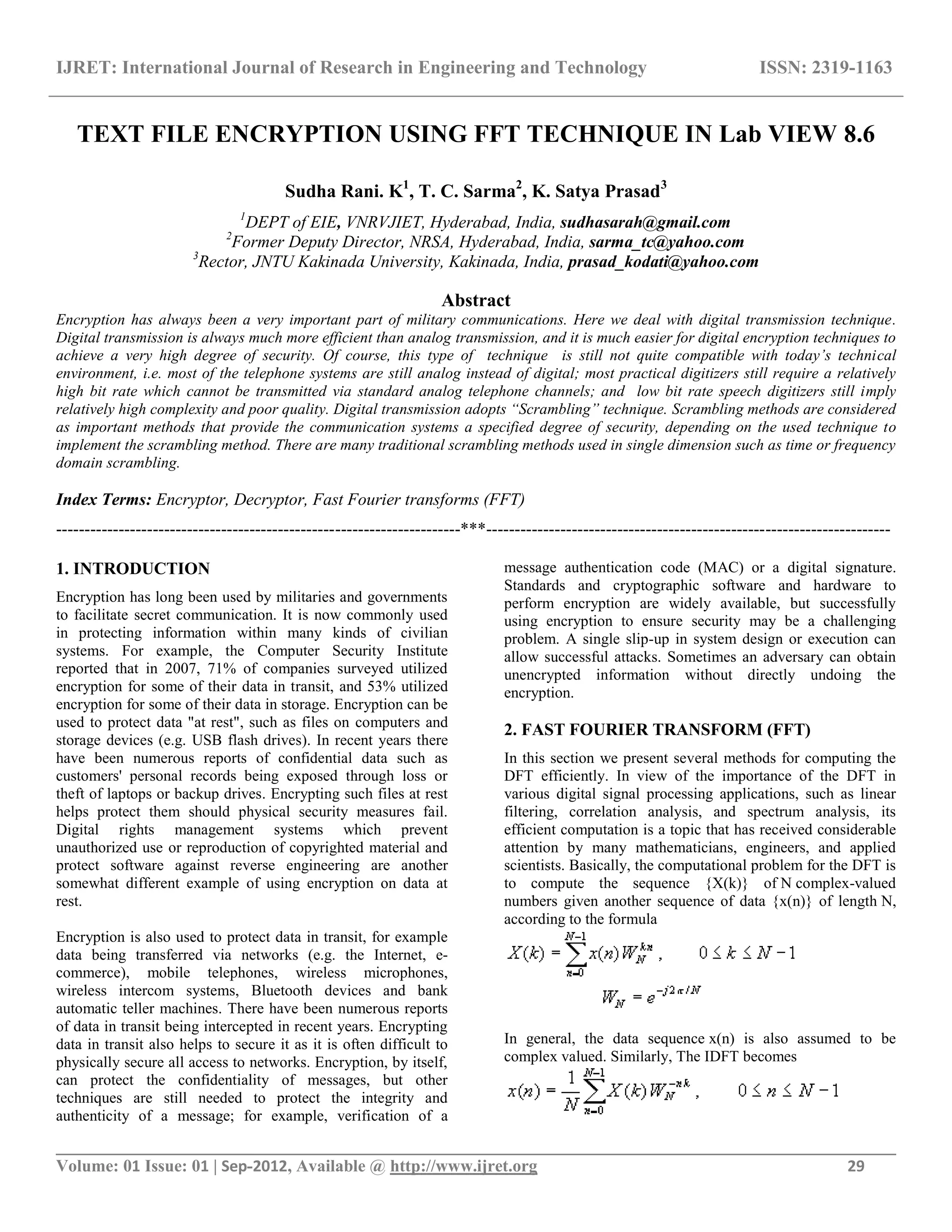 This document summarizes encryption techniques using Fast Fourier Transforms (FFT) in LabVIEW. It first discusses digital encryption and how FFT techniques can provide a high level of security. It then provides details on FFT algorithms like the radix-2 FFT and decimation-in-time/frequency algorithms. These algorithms reduce the computation complexity of the discrete Fourier transform (DFT) from O(n2) to O(nlogn). The document concludes with an overview of encryption methods like hashing, symmetric, and asymmetric cryptography and their various uses.