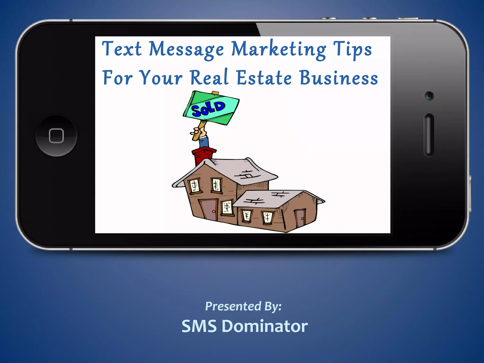 This document provides tips and ideas for using text message marketing in a real estate business. Some key benefits of text message marketing include high open and response rates, the ability to send personalized and targeted messages, and building client loyalty. Real estate agents can use text messages to send property listings and information, appointment reminders and cancellations, and engage clients with contests and surveys. The document also recommends ways to build a mobile contact list and discusses best practices like always including contact details and opt-out instructions.