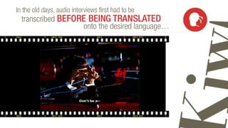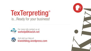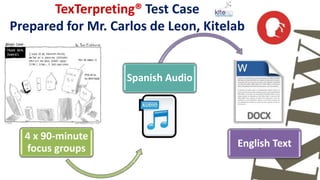 The document compares the traditional method of translating audio to text with TexTerpreting's one-step method. The traditional method involves transcribing audio to the source language text, translating that text to the target language, and has higher costs due to transcription fees. TexTerpreting directly translates audio to the target language text in one step for a flat $15 per minute rate, delivers the results faster, and avoids potential errors from transcription.