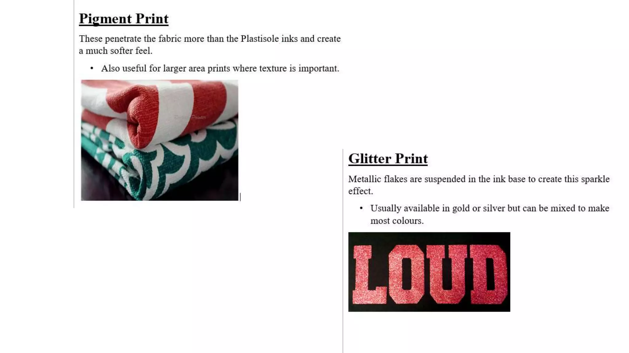 Types of print provides an overview of textile printing which is the process of applying color to fabric in definite patterns or designs. The printing process bonds the color to the fiber so it can resist washing and friction. The presentation also discusses print placement on fabrics.