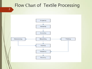 This document provides an overview of various textile processing steps, including: