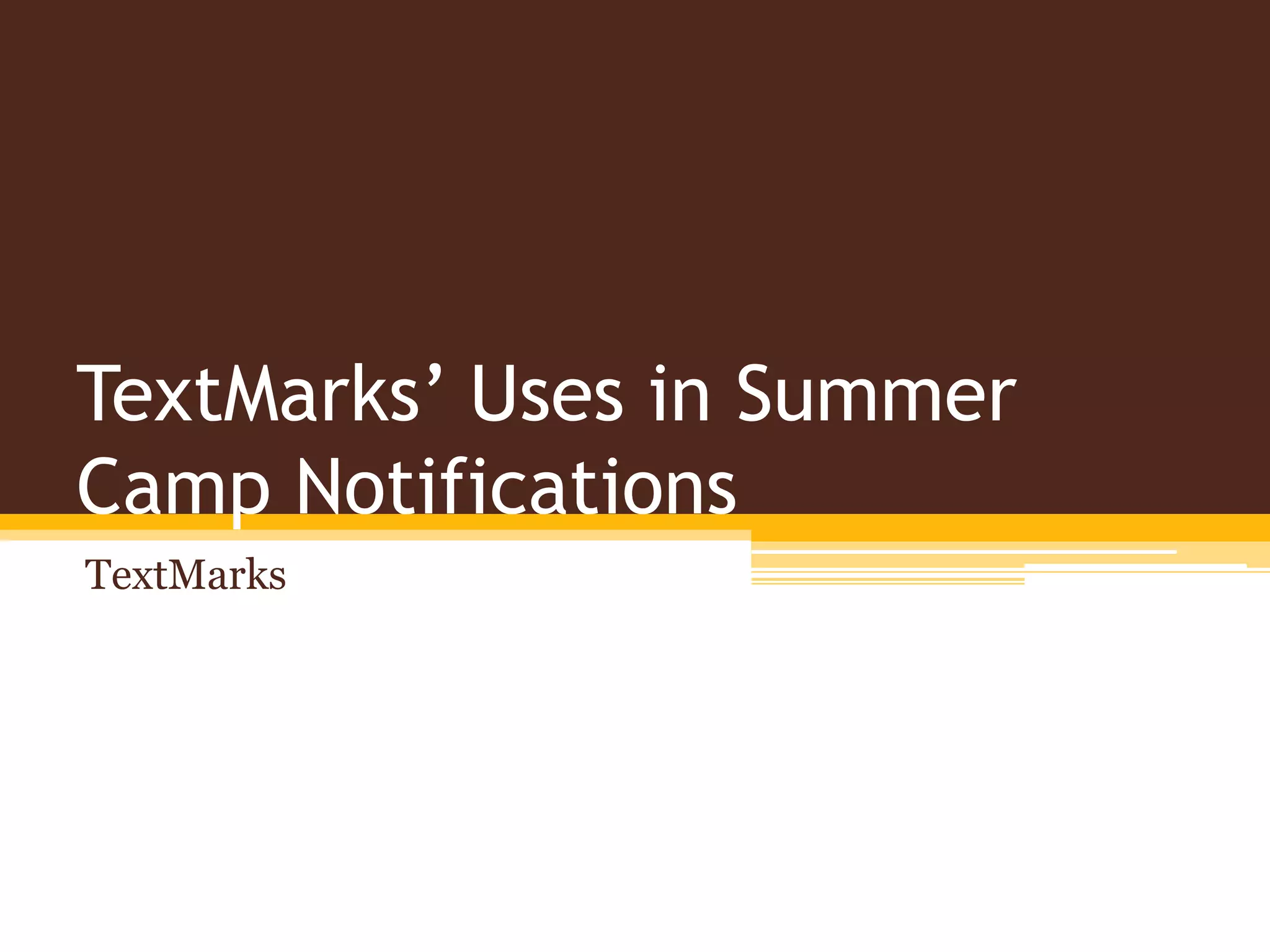 TextMarks is an SMS marketing platform that allows camps to effectively communicate with parents and staff. It can send messages to large groups with open rates near 100%, helping camps promote registration pages and provide reminders to parents about fees and clothing needs. Camps can also use TextMarks to coordinate operations between diverse staff members like counselors and transportation to keep everyone informed through timely text messages.