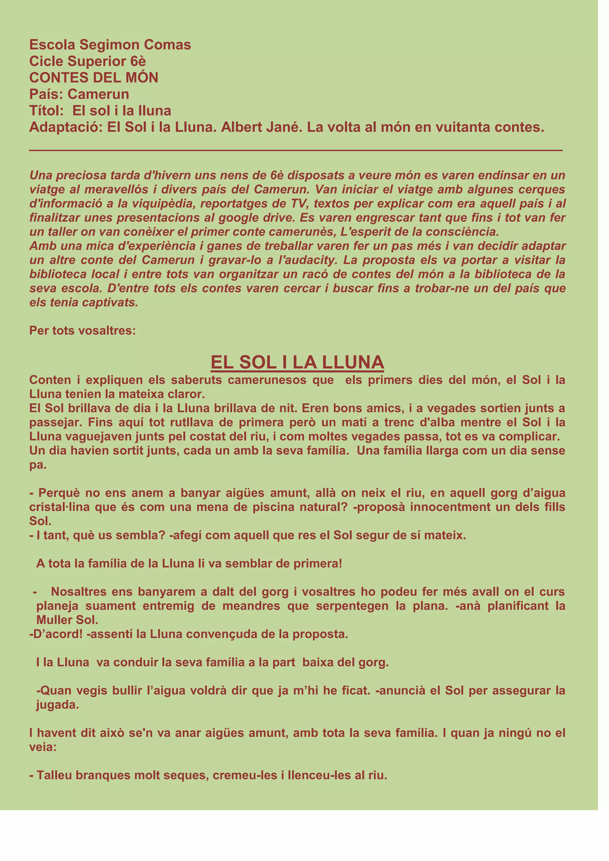 seva escola. D'entre tots els contes varen cercar i buscar fins a trobar-ne un del país que