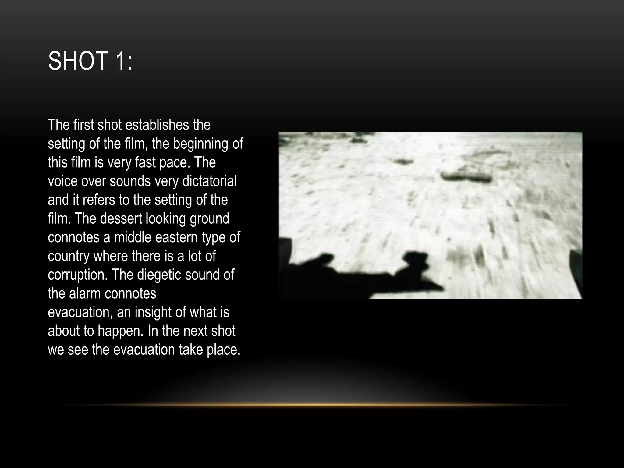 The document provides a textual analysis of 15 shots from the film The Hurt Locker. The shots are analyzed based on camera angles, movements, sounds, and how they contribute to establishing the setting and conveying meaning. Specifically, the opening shots use a fast pace and evacuation scenes to set the film in a Middle Eastern country experiencing conflict and corruption. Subsequent shots depict the chaos of the evacuation, soldiers maintaining focus amidst uncertainty and being watched, and the perspective shifting between soldiers and what they observe. Throughout, camera work and sounds are used to make the audience feel like they are experiencing the situation firsthand.