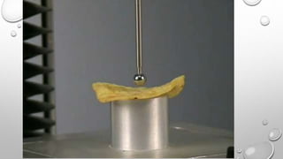 This document discusses a texture analyzer and its various accessories. It describes how a texture analyzer works by compressing or stretching samples to measure properties like hardness, springiness and chewiness. Several accessories are mentioned, including a heavy duty platform, load cells, a video capture system, temperature and humidity modules, and sample preparation tools. Specific accessories like a dough inflation system, twin blade cutter, and spreadability rig are also outlined along with their purposes of testing properties of dough, preparing uniform samples, and measuring spreadability respectively.