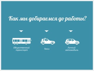 Документ обсуждает способы добирания до работы, включая общественный транспорт, личные автомобили и такси, подчеркивая проблемы, такие как пробки и высокая стоимость бензина. Также упоминаются преимущества сервиса Tezway, включая комфорт, безопасность и экономию денег, а также его положительное влияние на экологию и дорожную ситуацию в Казахстане. Цитата министра энергетики акцентирует внимание на совместной поездке как альтернативе.