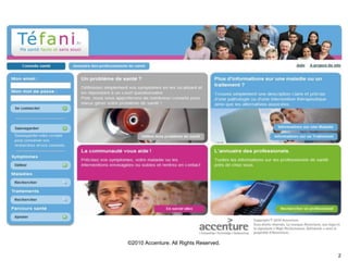 This document presents screenshots from a prototype of an application called "Je gère ma santé au quotidien" (I manage my health daily). The screenshots show a home screen with quick links to medication reminders, health records, appointments and more. Additional screens provide more details on medications, health metrics and appointments. The document includes the copyright and date from the company that developed the prototype.