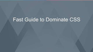 CSS is used to style and design HTML elements by applying rules that specify selectors, attributes, and values. CSS rules consist of a selector that identifies the element to style, an attribute to modify like color or size, and a value for the attribute. CSS can be applied on TFM by clicking elements to auto-generate rules and make live changes to previewed content. Examples demonstrate how to modify display, visibility, position, colors, fonts, backgrounds, and target specific app screens.