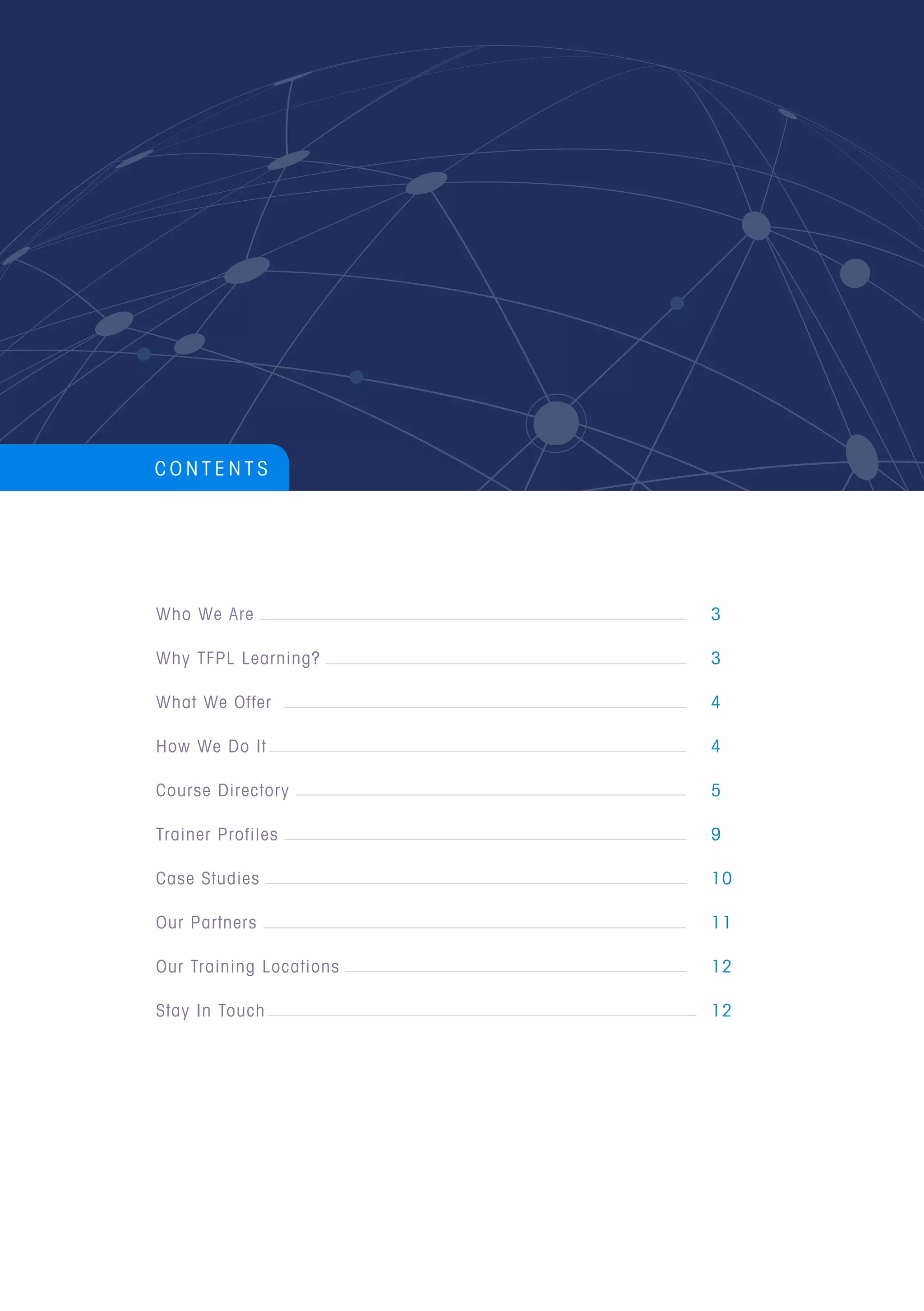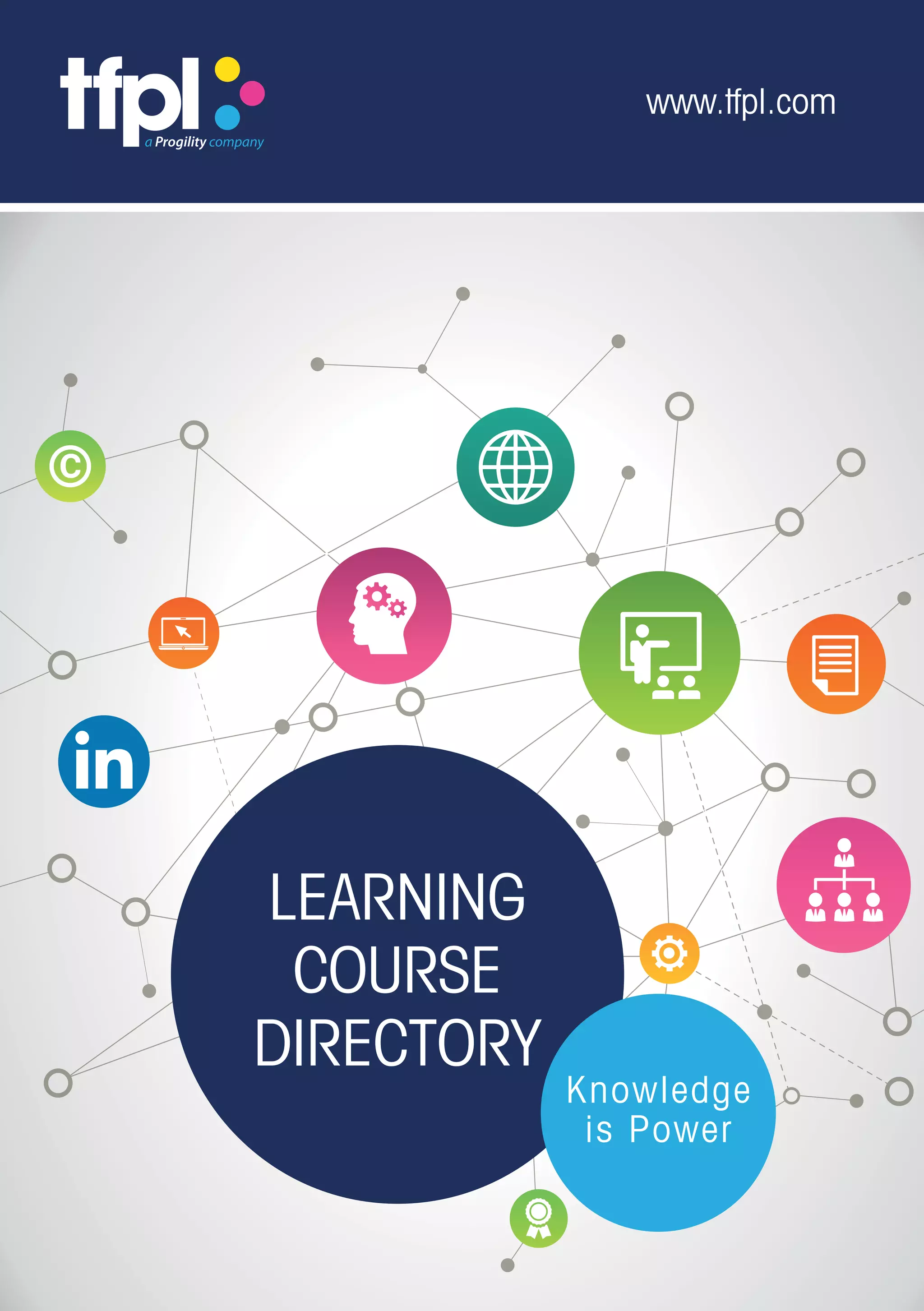 This document provides information about TFPL Learning, a training and development company that offers over 100 courses across various disciplines including IT, personal development, records management, and knowledge management. It details their course offerings such as scheduled public courses, virtual classrooms, in-house training, and e-learning. It also provides an overview of their trainers' expertise and outlines their process for ensuring training maximizes impact through their use of the ADDIE model. The document acts as a course directory and marketing material for TFPL Learning.