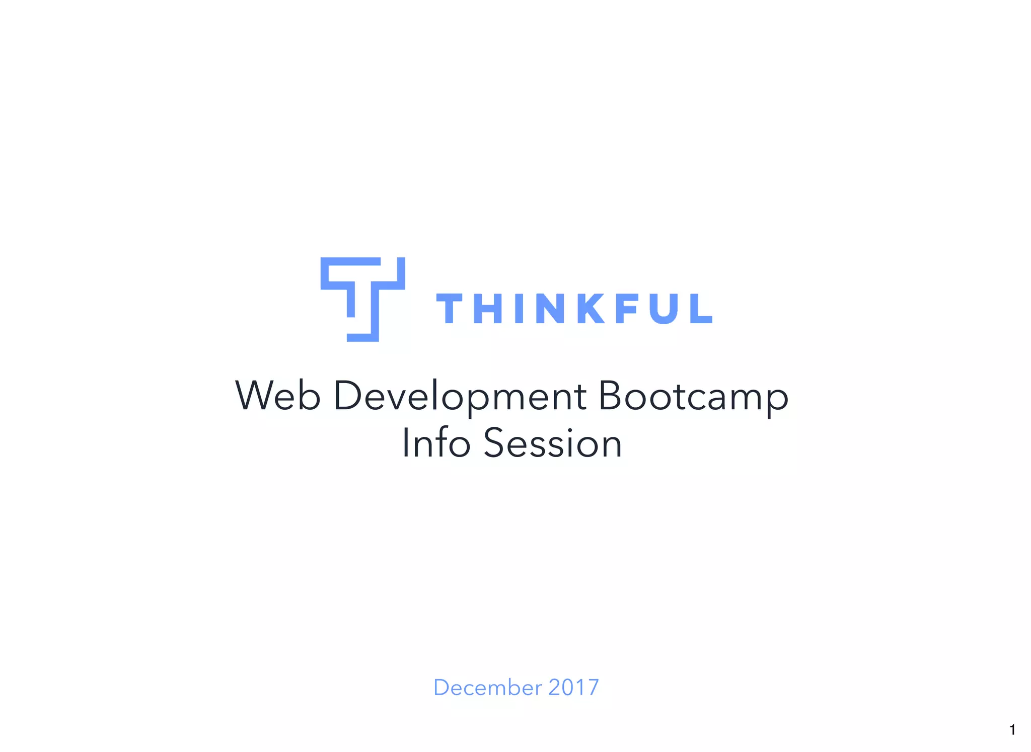 This document summarizes an info session for Thinkful's online web development bootcamp program. It introduces the presenters and discusses the current tech industry landscape and demand for skilled developers. The program overview highlights features like 1-on-1 mentorship, a project-based JavaScript curriculum, and career support services. Attendees learn how Thinkful provides an accessible education through its flexible online format and assistance with financing options.