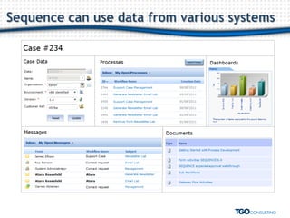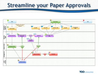 This document outlines a quarterly meeting organized by TGO for clients across various industries to discuss ERP solutions and business process management (BPM). Key topics include improving ERP efficiency through BPM, addressing current challenges, and automating business processes to enhance visibility and compliance. The document also highlights various use cases within different business functions such as HR, finance, and sales.