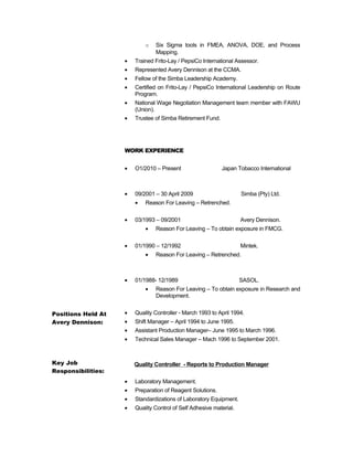 Thabo Makhanya has over 30 years of experience in production management, quality control, and sales management. He held various roles at Avery Dennison from 1993 to 2001 including quality controller, shift manager, assistant production manager, and technical sales manager. From 2001 to 2009 he worked at Simba (Pty) Ltd in roles such as distribution center manager, frontline sales leader, and regional sales manager for the Western Cape region. Since 2010 he has been a regional sales manager for Japan Tobacco International in the Western Cape region.