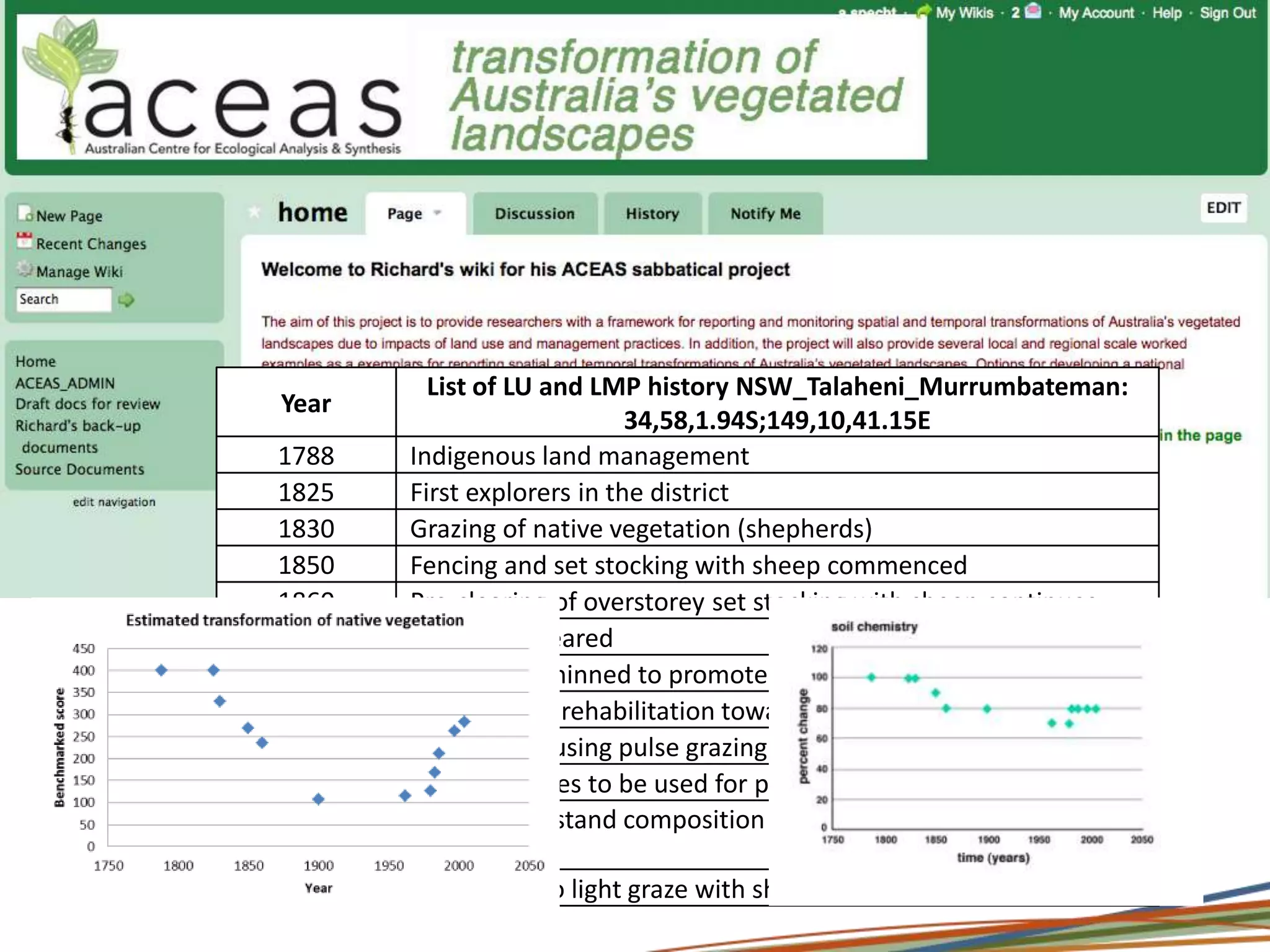 2) A case study applying this method examines the transformation of open grassy woodlands in New South Wales through compiling historical land use and disturbance records and scoring changes in vegetation structure, composition, and regenerative capacity.