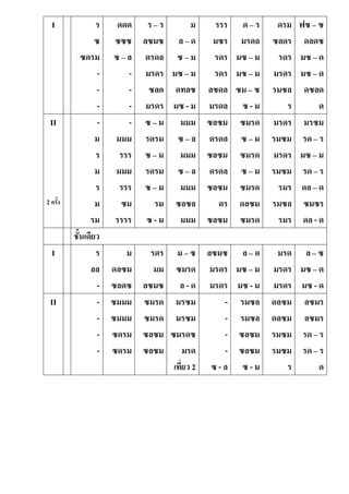 ล - - - ร – ร ลซมซ ดรดล มรดร ซลด มรดร ม ล – ด ซ – ม มซ – ม ดทลซ มซ - ม รรร มซร รดร รดร ลซดล มรดล ด – ร มรดล มซ – ม มซ – ม ซม – ซ ซ - ม ดรม ซลดร รดร มรดร รมซล ร ฟซ – ซ ดลดซ มซ – ด มซ – ด ดซลด ด II 2 ครั้ง - ม ร ม ร ม รม - มมม รรร มมม รรร ซม รรรร ซ – ม รดรม ซ – ม รดรม ซ – ม รม ซ - ม มมม ซ – ล มมม ซ – ล มมม ซลซล มมม ซลซม ดรดล ซลซม ดรดล ซลซม ดร ซลซม ซมรด ซ – ม ซมรด ซ – ม ซมรด ดลซม ซมรด มรดร รมซม มรดร รมซม รมร รมซล รมร มรซม รด – ร มซ – ม รด – ร ดล – ด ซมซร ดล - ด ชั้นเดียว I ร ลล - ม ดลซม ซลดซ รดร มม ลซมซ ม – ซ ซมรด ล - ด ลซมซ มรดร มรดร ล – ด มซ – ม มซ - ม มรด มรดร มรดร ล – ซ มซ – ด มซ - ด II - - - - ซมมม ซมมม ซดรม ซดรม ซมรด ซมรด ซลซม ซลซม มรซม มรซม ซมรดซ มรด เที่ยว 2 - - - - ซ - ล รมซล รมซล ซลซม ซลซม ซ - ม ดลซม ดลซม รมซม รมซม ร ลซมร ลซมร รด – ร รด – ร ด