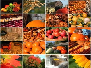 Thanksgiving Day is celebrated annually on the fourth Thursday of November in the United States. It originated as a religious holiday to give thanks to Jesus but is now considered both secular and religious. Most Americans celebrate by gathering with family or friends for a Thanksgiving meal. The American holiday traces its origins to harvest festivals but is specifically tied to the Native Americans who helped the English Pilgrims survive their first winter in Plymouth in 1621.