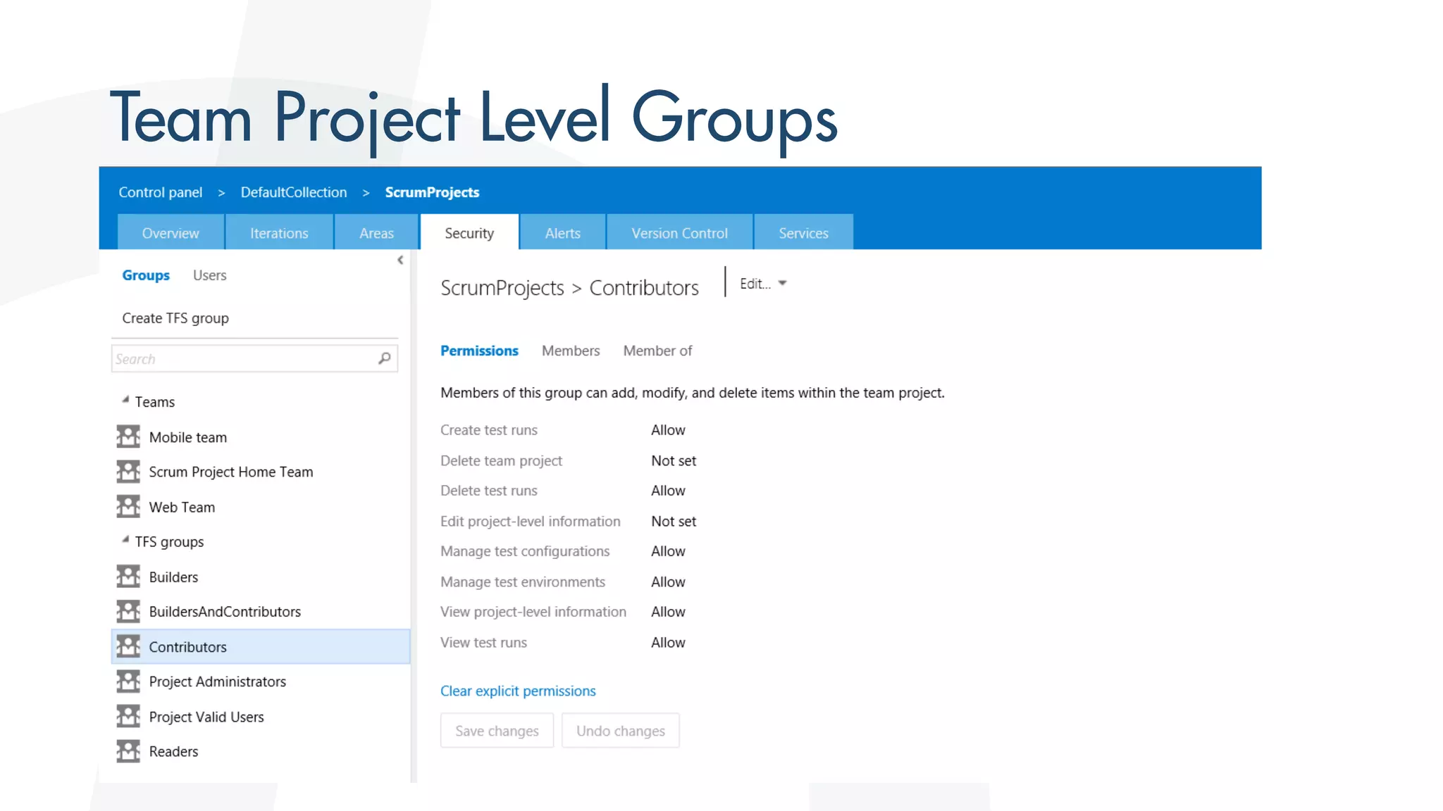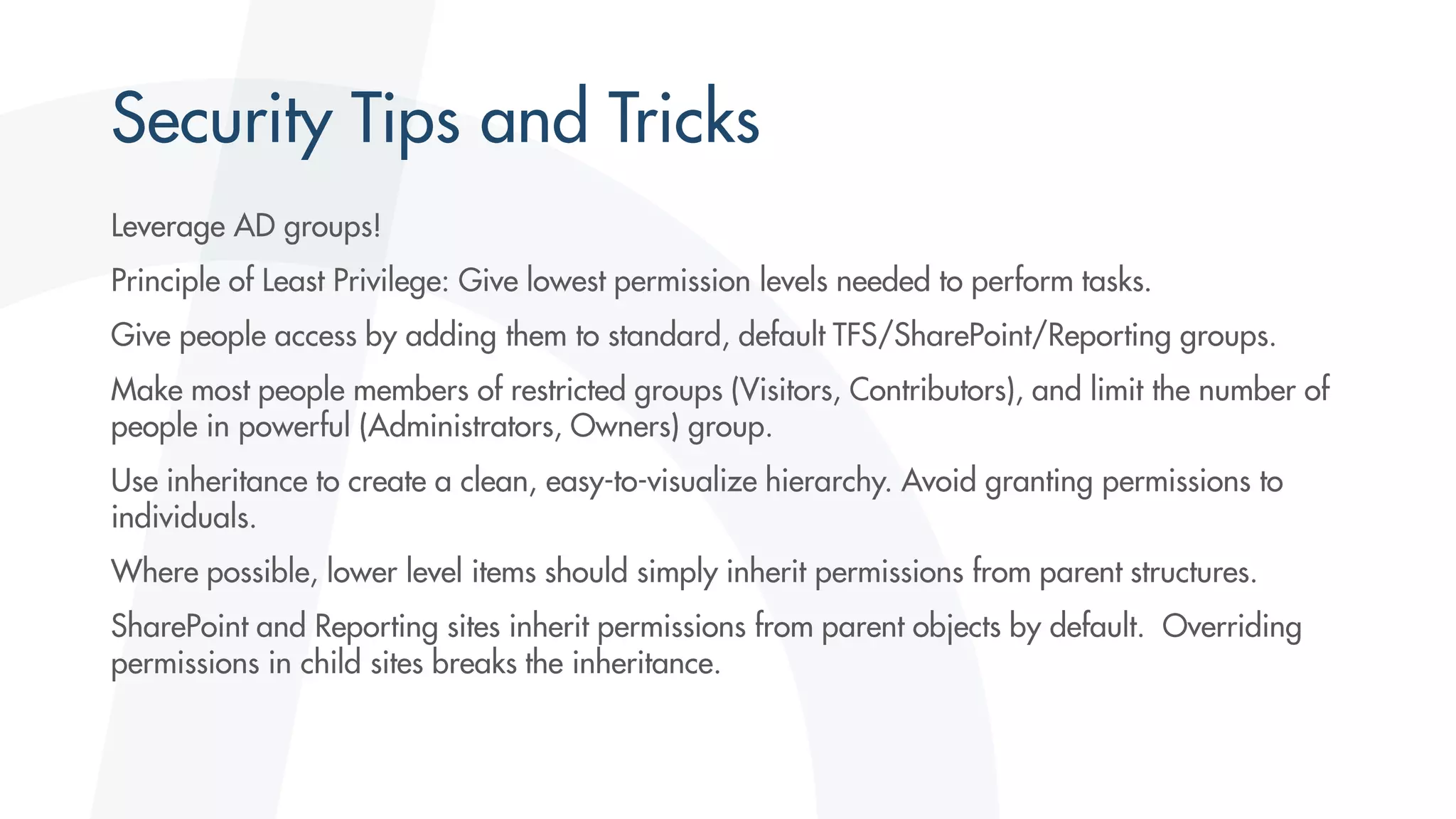 This document summarizes Angela Dugan's presentation on managing TFS structures and security. It discusses how to plan and structure team projects, collections, and teams to ensure effectiveness, scalability, and efficiency. It also provides recommendations on when to create new team projects or collections and how to manage permissions and security across TFS, SharePoint, and reporting services. Additional tools for administering and analyzing TFS implementations are also introduced.
