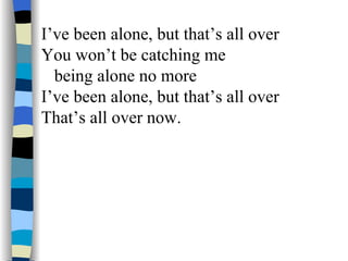 The song lyrics describe how the person used to feel alone, afraid, ashamed, and abused, but that through being embraced, graced, and claimed by the spirit of God, those negative feelings are now over and they will no longer experience loneliness or fear.